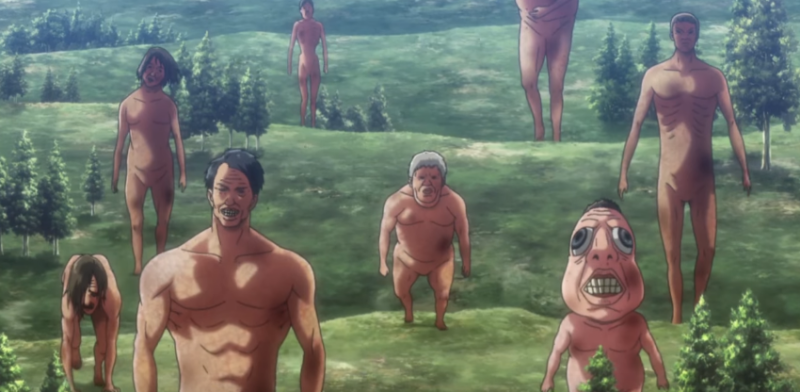 One of the most recent posts shows a Titan who is either lying about or is dead. Nevertheless, the houses beneath it are crushed and so are the people. In front of it is a man on a horse.