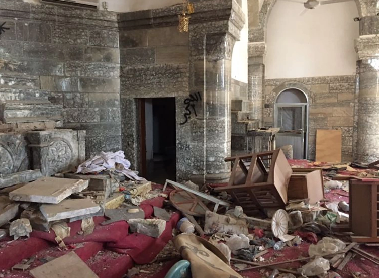 In the nearby Chapel of the Immaculate Conception, militants scrawled anti-Christian graffiti on the walls.
