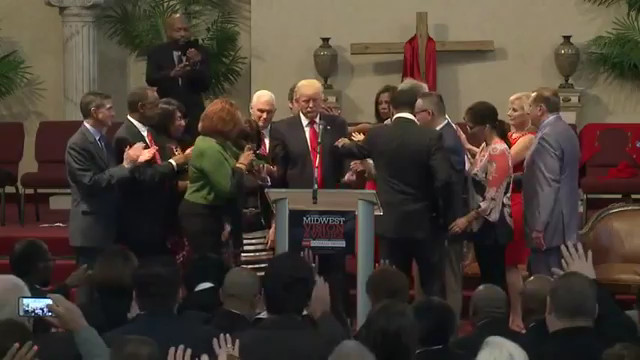 The pastor's wife, Belinda Scott, expressed her appreciation for Trump before she led the audience in prayer. She began her prayer thanking Jesus for "raising up" Trump and asked God to anoint the candidate.