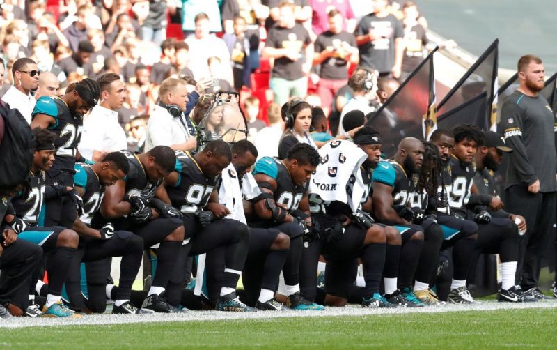 Following Trump's remarks, more than 20 players and staff members from the Baltimore Ravens and the Jacksonville Jaguars knelt or linked arms before the game at Wembley on Sunday. Similar demonstrations took place at other NFL games throughout the weekend, with three teams remaining in the locker rooms or tunnel for the duration of the anthem, according to BBC.