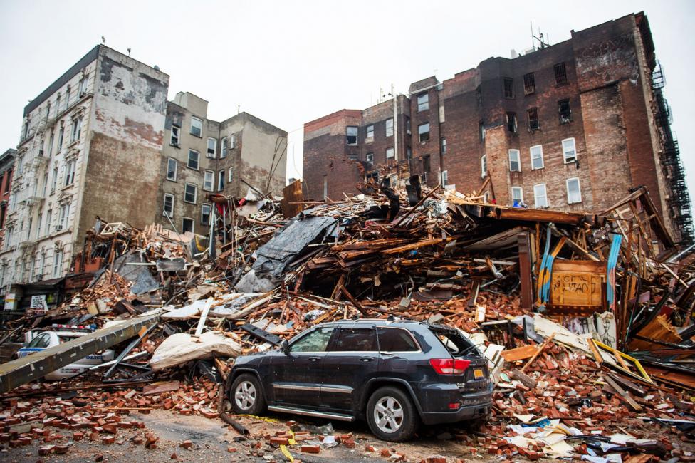 The explosion happened Thursday afternoon at the corner of Second Avenue and East 7th Street in Manhattan's East Village, when an explosion caused part of the building to collapse and resulted in a seven-alarm fire.