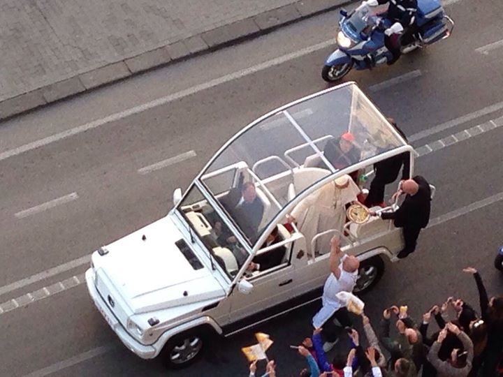 Cacialli hopped a barrier with his pizza creation in hand as the Pope's mobile came near.