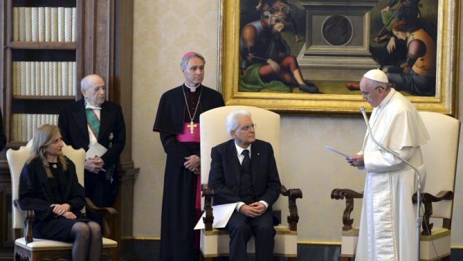 At his first official meeting with the new Italian president Sergio Mattarella, the Pope thanked Italy, which has borne the brunt of the rescue efforts, for welcoming migrants seeking refuge.