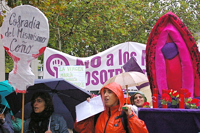 According to Church Militant, a group of 10–15 young protesters affiliated with Antipatriarcals Mallorca went into the Church of St. Miquel on Feb. 12, 2014 and started shouting pro-abortion slogans, such as "free and gratuitous abortion" and "get your Rosaries off our ovaries."